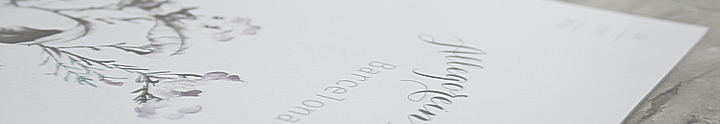 Con las postales Silvia Y Anna querían agradecer a todas sus compañeras y amigas de profesión la asistencia al evento. Esto lo conseguimos con un simple «thank you» acompañado por una aguada en acuarela. Bello, ¿verdad?